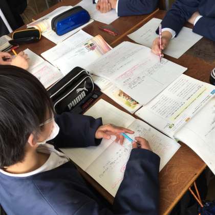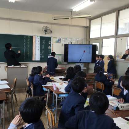 2月15日(水)5時間目に4年2組で国語科の授業研究会を行いました。単元は、『読書会を開こう「世界一美しいぼくの村」』というアフガニスタンの話です。子ども達は、最後の段落を読み取って戦争でなくなったものとなくならなかったものについて考え、グループで意見発表を行っていました。授業の後、芦屋大学の坪田先生から授業の進め方について指導をしていただきました。