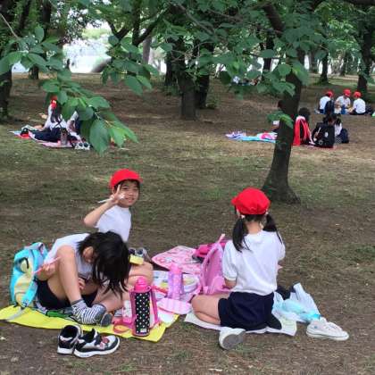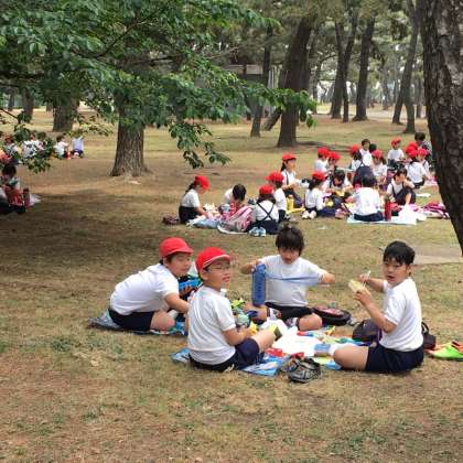 5月12日(金)3・4年生は浜寺公園へ遠足に行きました。はじめに公園にあるすべり台やブランコなどの遊具で遊びました。次に松林の芝生の上でみんなで一緒にお弁当やおやつを食べました。その後、また遊具で楽しく遊びました。とてもよい天気に恵まれ、想い出に残る楽しいい遠足になりました。