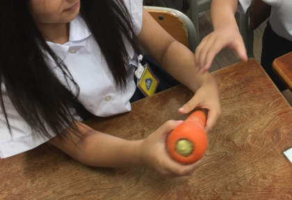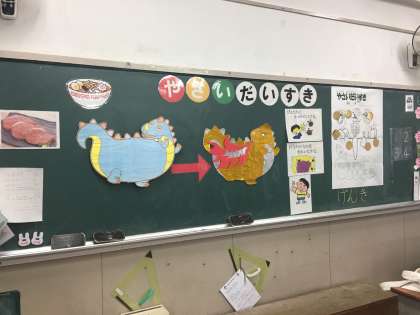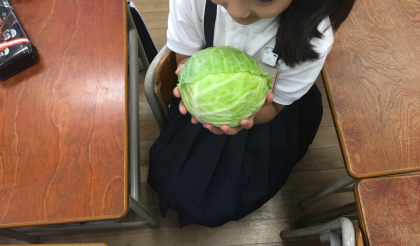「やさい だいすき」ということで、好き嫌いしないで野菜を食べようという学習を行いました。本日の給食にでてくるにんじん、キャベツ、三度豆そしてたまねぎなどの野菜をさわったり、香りをかいだりしました。今回の授業で、野菜を好きになってくれたら幸いです。