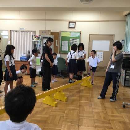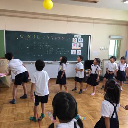 6月14日(水)1時間目になかよし交流会がありました。1年生が、なかよし学級に行き、なかよし学級の子ども達と一緒に遊ぶことによって、相互理解を図る取り組みです。1年生の子ども達は、プレイルームを見たり、平均台ジャンケンや風船バレーなどで一緒に遊んだりしてとても楽しそうに過ごしていました。これからもなかよし学級の友だちとなかよくしてほしいと思っています。