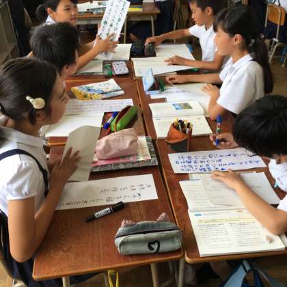 6月28日(水)5時間目に6年3組で国語科の授業研究会が行われました。「イースター島にはなぜ森林がないのか」という単元の学習でした。子ども達は一生懸命に課題に取り組み、自分の考えをまとめ、グループで交流したり発表しあったりしていました。暑い中でしたがとてもよく頑張っていました。