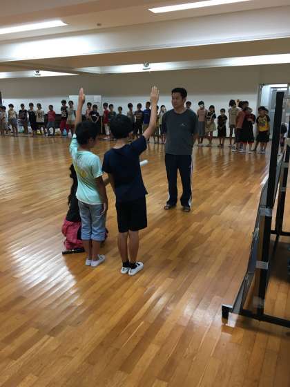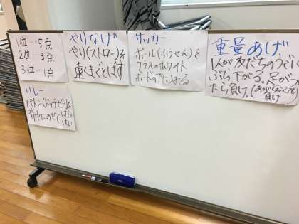 焼き板を磨いた後は、体育館で室内オリンピックをしました。