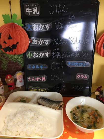 本日の給食は、さんまのさんしょう焼き でした。