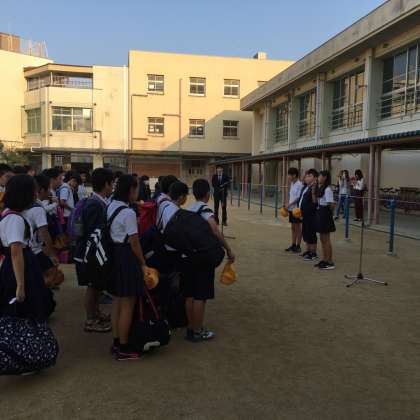 予定通り、出発式を終えて学校から7時30分頃に修学旅行に出発しました。早朝よりたくさんのお見送りありがとうございました。