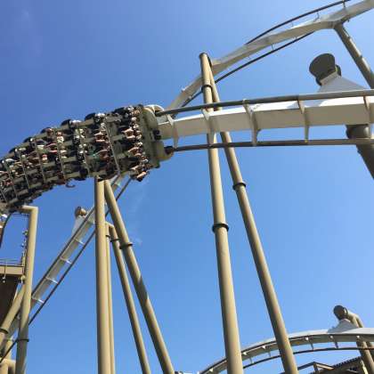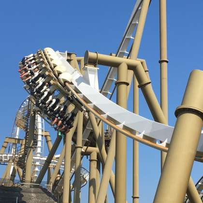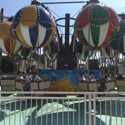 志摩スペイン村のアトラクションに班行動で乗ったり体験したりしています。