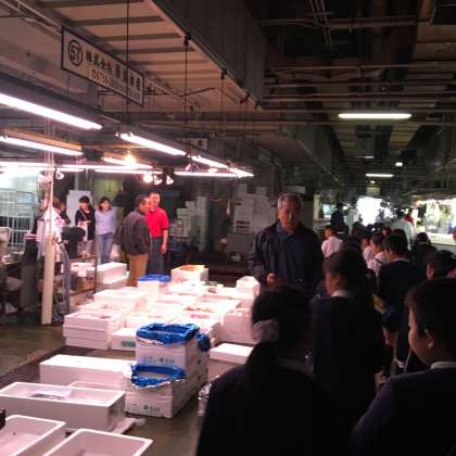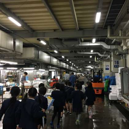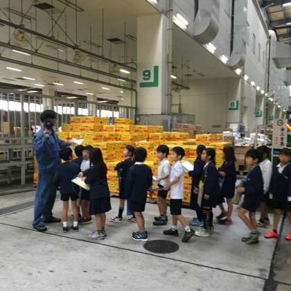 10月20日(金)3年生は、たんけんバックを持って東部市場の見学に行きました。少し雨模様の天気でしたが、東部市場ではDVDを見たり、水産卸売り場から青果卸売り場などを見学したりしました。マグロの頭やフグも見せてもらいました。子ども達は、とても楽しそうにメモをとりながら友達と一緒に見学していました。最後の質問の時間にはたくさんの子ども達がさまざまな質問をしていました。東部市場の皆様、ありがとうございました。