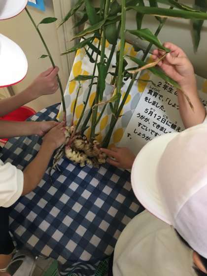 東部市場の食育として四万十川の方に育和小学校に来てていただき「しょうがの栽培」を5月に行い、しょうがの栽培を行いました。