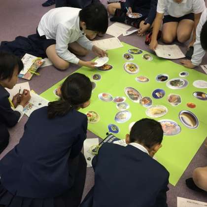11月14日(火)5年2組で朝食をテーマに栄養指導を行いました。はじめに五大栄養素の復習をした後、子ども達が思い思いに自分達で朝食のメニューを考えました。和食にする子、洋食にこだわる子、好きなものばかり選ぶ子など様々でした。栄養バランスも考えて朝食メニューができたでしょうか?おうちでも実際に作ってみるのもおもしろいと思います。子ども達が考えたメニューは、東住吉区の朝食コンテストに応募する予定です。