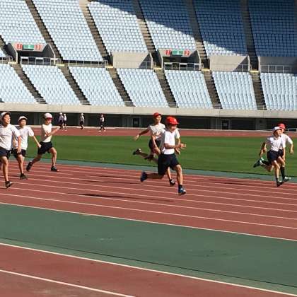 11月16日(木)6年生は、ヤンマースタジアム長居とヤンマーフィールド長居で行われた小体連東住吉区スポーツ交歓会に参加しました。東住吉区10校の6年生が集まりました。開会式の後、ヤンマースタジアム長居で50mと100mの記録をとりました。その後、800mも走りました。男女とも育和小学校が1位でした。昼からはヤンマーフィールド長居に移動し、サッカー、ドッジボール、ドッチビー、大なわとびを楽しみました。少し寒い陽気でしたが、好天に恵まれとても楽しい交歓会になりました。