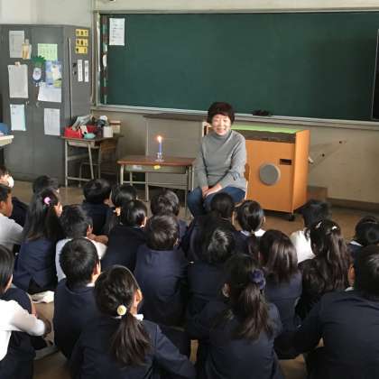 11月17日(金)3年生は、「お話パレット」の方に来ていただいてお話会を開きました。ろうそくをともしていろいろなお話をしてもらったり、本を読んでもらったりしました。子ども達は、とても静かに真剣に聞き入っていました。「お話パレット」の皆さん、ありがとうございました。読書の秋です。これからもどんどん本に親しんでほしいと思います。