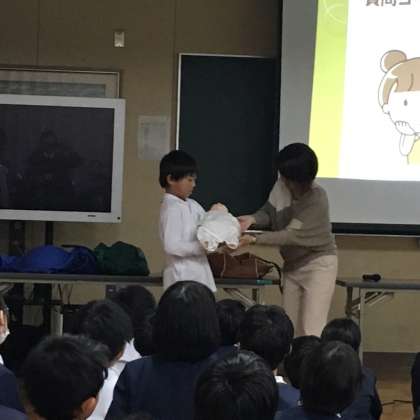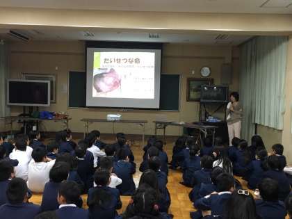 11月24日(金)5年生では、助産師の方に来ていただいて「いのちの授業」をしました。赤ちゃんが生まれるまでの過程や命の大切さについてわかりやすく教えていただきました。心臓の音を聴診器で聞いたり、ダミーの赤ちゃんもだっこさせてもらいました。これからも自分の命とともに他人の命も大切にしてほしいと思います。