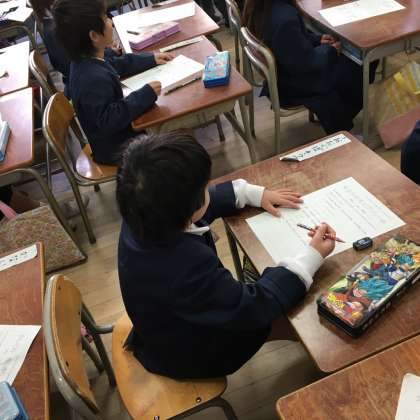 12月13日(水)2時間目に1年1組でピア・サポートの授業がありました。2組、3組は昨日行いました。明日の保幼小の交流会「☆いくわ きらきら らんど」を前に幼稚園や保育園の子が楽しくなる作戦を考えました。そして、自分で考えた作戦を実際に友だちに試してみました。輪投がうまくできた時、できなかった時の声かけなどを練習しました。明日がとても楽しみになりました。1年生の皆さんは明日しっかり頑張ってくれると思います。