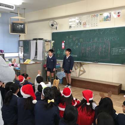 12月22日(金)それぞれの学級をのぞいてみると、多くの学級でお楽しみ会が行われていました。スポーツをしたり、クイズをしたり、出し物をしたりととても楽しそうにしていました。いろいろな行事があった2学期もあと1日でおしまいです。年末年始を含む冬休みを元気に過ごしてほしいと思います。