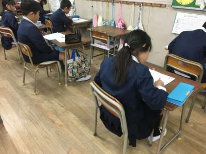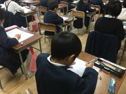 大阪市では昨年度より、「大阪市小学校学力経年調査」を実施しています。目的は、学習理解度や学習状況を知り、目標をもって学習に取り組めるようにすることなどで、調査結果については、教育委員会から学校を通じて、子ども一人一人に個人票をお渡しします。育和小学校の子ども達もさっそく今日から「大阪市小学校学力経年調査」に取り組んでいます。がんばれ子ども達!