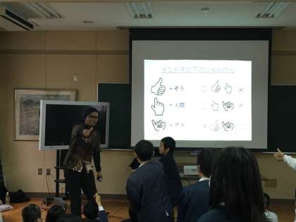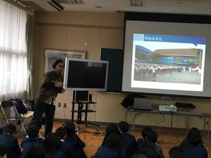 1月17日(水)4年生は、国際理解教育の一環として国際交流センターからインドネシアの方に来ていただいてお話を聞きました。インドネシアの場所、季節、ことば、通貨、学校の様子、食べ物、民族衣装などについて教えていただきました。子ども達は、とても楽しそうにお話を聞いていました。最後にみんなで「ぞう」「人間」「アリ」を表すインドネシアのジャンケンをして盛り上がりました。インドネシアのことがよくわかりました。ありがとうございました。