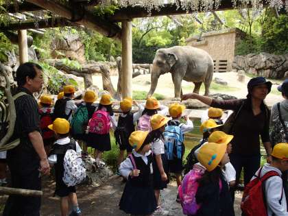 雨が心配されましたが、朝には天気もよくなり、元気よく天王寺動物園に出発しました。天王寺動物園には、開園と同時に入場、一番にお弁当の場所に荷物を置きました。次に、園内を散策しました。動物園ふれあいコーナーのやぎや羊は、朝一番ということもあり、もぐもぐ草の朝ごはんを食べていました。体が大きいトラは、堂々と歩いていて、力強さを感じました。1メートル以上もある羽を大きく開いたコンドルをみることもできました。きりんもぞうも、間近でみることができ、とてもラッキーでした。カバは水の中でねていました。かばのうんこを水の中で泳いでいる魚が食べていて、みんなでびっくりしました。