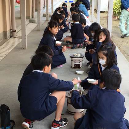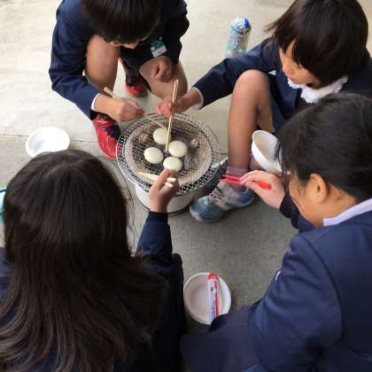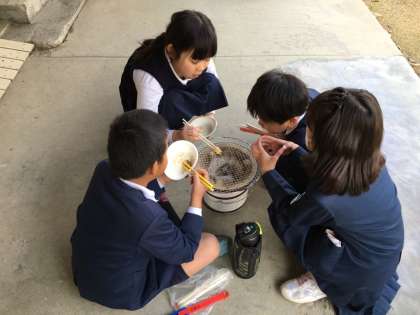 1月23日(火)3年生は、社会科の学習で「昔の人のくらしを体験しよう」ということで七輪でおもちを焼いて食べました。雪が舞うような寒い中でしたが、子ども達は、管理作業員さんに火おこしを手伝ってもらっておもちを焼いていました。少し焦げてしまったおもちもありましたが、子ども達は、とても嬉しそうに食べていました。「もう一個食べたい!」という声がたくさん聞かれました。