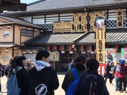 2月9日(金)6年生は、京都の太秦映画村に卒業遠足に行きました。とても良い天気に恵まれ、1日中、時代劇の世界やアニメの世界を堪能しました。無料のアトラクションだけではなく、有料のアトラクションにも3つ入ることができたため、子ども達はグループでしっかり相談して回っていました。レーザーミッションやサスケのショー、お化け屋敷が大人気でした。