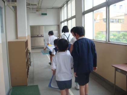 この日初めてかわいい1年生に出会うということで、前日から、みんなどきどき、はらはら!「迷子にならないかな?」「泣いたらどうしよう!」「やんちゃな子かな?」などの声も多くありましたが、当日は、みんな立派なお兄さん、お姉さんぶりでした。一緒に手をつないで回ったり、おんぶをして回ったり、6年生の教室では見られない、ほほえましくたのもしい姿が見られました。1年生と別れるとき、1年生に「楽しかったよ。ありがとう。」と言ってもらい、6年生もほっとひと安心。