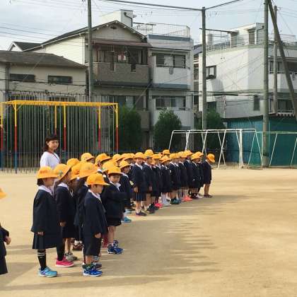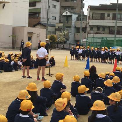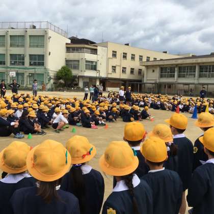 4月11日(水)朝の児童集会の時間に運動場で対面式を行いました。2年生以上の子どもたちが整列した後に、かわいい1年生が登場してきました。校長先生のあいさつの後、子どもたちを代表して6年生2名が「仲良くいっしょにがんばりましょう。」とあいさつをしました。そして、1年生が「よろしくお願いします。」と元気よくあいさつをして対面式は終了しました。これで1年生も今日から育和小学校の仲間入りです。来週の児童朝会から1年生も参加する予定です。