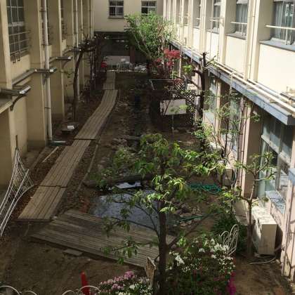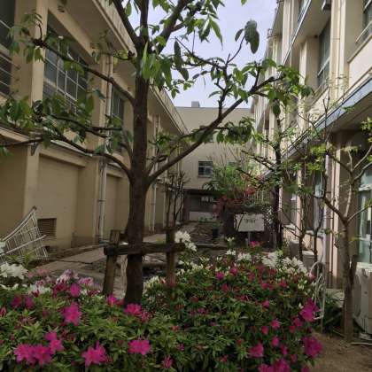 4月16日(月)管理作業員さんと教育委員会の園芸班の方が協力してビオトープの樹木の剪定をしてくれました。切った木材はチップにして地面にまく予定です。薄暗かったビオトープがいっきに明るく日差しが入るようになりました。池にいるメダカやヤゴも喜んでいることでしょう。これからもビオトープを利用した活動にも取り組みたいと思います。ありがとうございました。