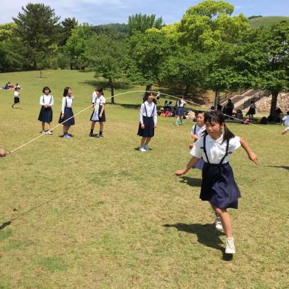 5月1日(火)5年生は、奈良公園へ遠足に行きました。駅から奈良公園をぬけて東大寺を見学し、二月堂などを通って、春日野園地まで歩くコースです。子ども達は、奈良公園で時々出会う鹿にとてもフレンドリーに接していました。また、大仏殿では奈良の大仏の大きさにもとても驚いていました。春日野園地ではきれいな芝生の上でお弁当を友だちと楽しく食べ、みんなで思い切り遊ぶことができました。天気にも恵まれ、とても楽しい思い出に残る遠足になりました。