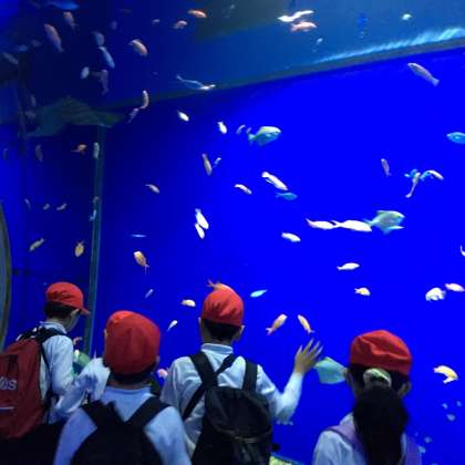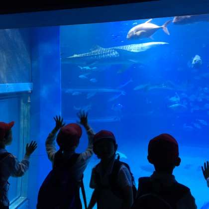 5月2日(水)2年生は、遠足で海遊館へ行きました。海遊館は遠足の団体等で混み合っていましたが、子ども達は、知っている生き物が現れると、「あっペンギンだ!」「ジンベイザメやー!」等と立ち止まって、生き物の様子を食い入るように眺めていました。出口付近のタッチプールでは、実際に生き物に触り、「ざらざらしてる。」「初めて触った!」と興奮した声が聞こえてきました。海遊館の見学の後、友だちと楽しくお弁当を食べました。今回は海遊館の中でグループ活動をしましたが、同じグループの子を気遣いながら活動しており、大きな成長を感じました。