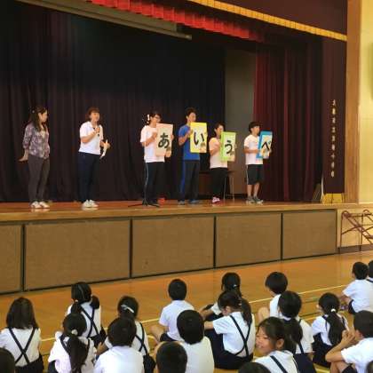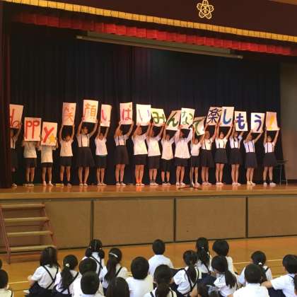6月4日(月)今日から「歯と口の健康習慣」が始まるのにちなんで、朝会の時間に「あいうべ体操」を行いました。この「あいうべ体操」は、ドライマウスや口呼吸の予防、風邪やインフルエンザにも効果があると言われています。1日、30回程度行うとよいとされています。子ども達は、健康教育部の先生に合わせて楽しそうに「あいうべー」と言っていました。また、児童会から「育フェス」に向けてのスローガンが発表されました。「育フェス」の準備もしっかり頑張ってほしいと思います。