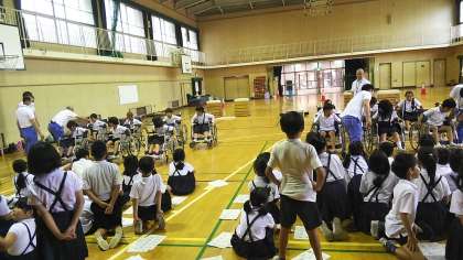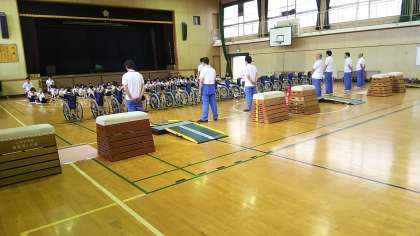 6月20日(水)3年生は、大阪市立心身障がい者リハビリテーションセンターの方に来ていただいて車いす体験学習を行いました。これは、車いすに実際に乗る・押すなどの体験を通じ、車いすを利用する人の気持ちを体感することで、相手の立場を考え行動する力を育てること、まちのバリアフリーや障害に対して理解を深めることを目的としています。体験を終えて子ども達は、「思ったよりも車いすが重かったので、段差や坂道で押すのが、難しかった。」「乗ってみると段差やでこぼこの道では振動が大きくなったり、坂道では体が急に傾いたりして怖かった。」などと話していました。