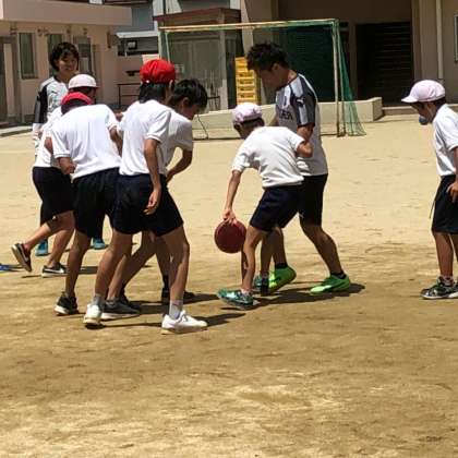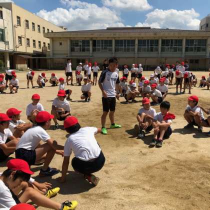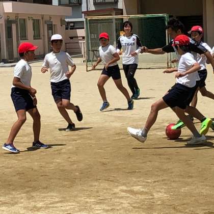 7月10日(火)トップアスリート「夢・授業」を6年生対象に行いました。セレッソ大阪の齋藤コーチ、家崎コーチ、滝田コーチ、松原コーチに来ていただいてサッカーを教えてもらいました。基礎練習の後、ミニゲームも行いました。コーチに挑戦するというコーナーもあり、とても盛り上がりました。暑い中でしたが、楽しくサッカーをすることができました。セレッソ大阪の皆さん、本当にありがとうございました。