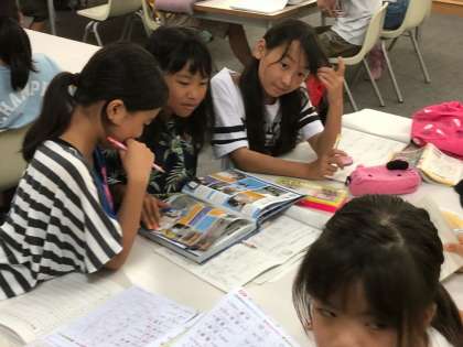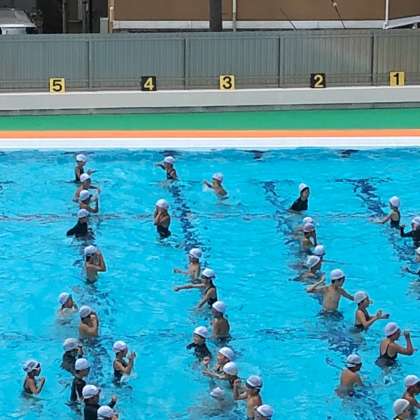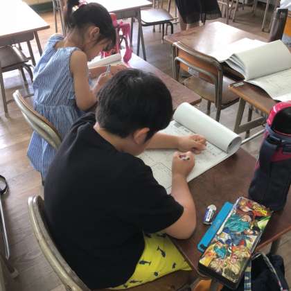 夏休みが始まりました。でも、学校は子ども達でとってもにぎやかです。プールに、図書館に、子ども達の元気な声が響いています。今日から、「プール開放」「図書館開放」「学習会」が始まったからです。子ども達は、暑い夏でも元気いっぱいです。