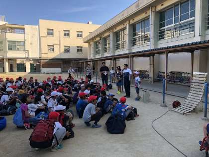 晴天の下、待ちに待った林間学習の始まりです。7時20分に出発式、7時40分予定通りバスは出発しました。5年生はみんなそろって元気にいってきます!
