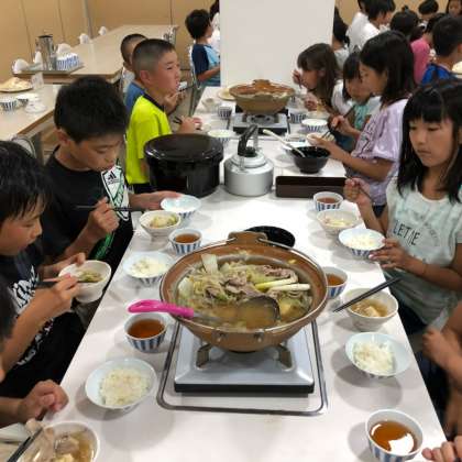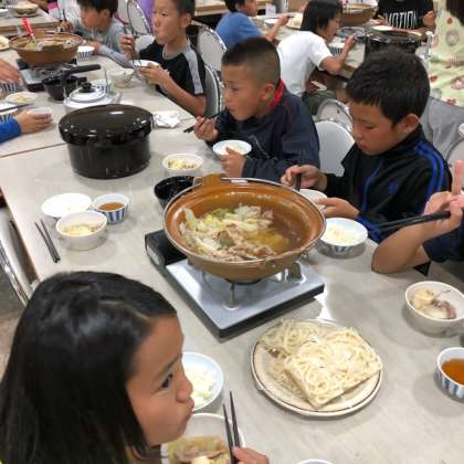 18:30夕食はカモ鍋です。締めのおうどんまでしっかり食べました。