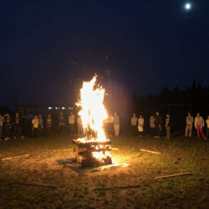 21:00天候に恵まれとても楽しいキャンプファイアかできました。各クラスのスタンツやゲームで盛り上がりました。