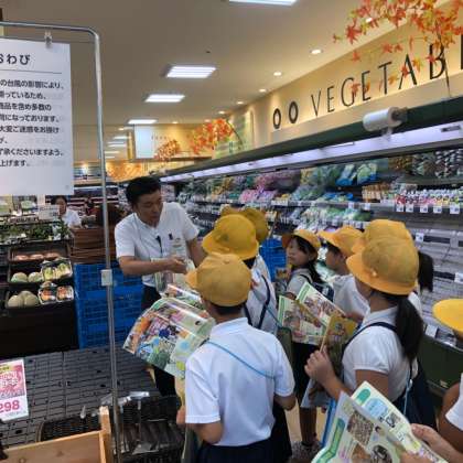 9月7日(金)3年生は、学校の近くにあるスーパーライフへ社会見学に行きました。はじめに副店長さんから見学のしかたについてお話を聞きました。それからグループに分かれて1階から3階までの店内を見学しました。マイナス13度の保冷庫に入れてもらったり、手作りパンのコーナーやレジなども見せてもらったりして、子ども達は大喜びでした。ご協力いただきましたお店の皆さま、ありがとうございました。