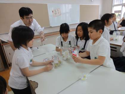 6月3日、梅ジュース手作り体験がありました。東部市場から来ていただき、梅の話や梅ジュースの作り方を教えていただきました。