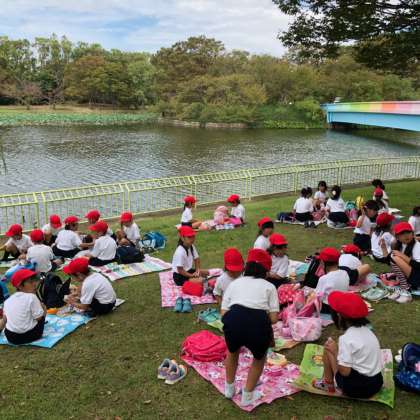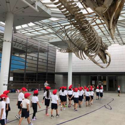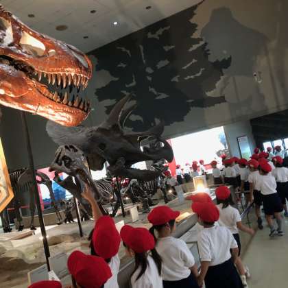 10月5日(金)天候にも恵まれ、1年生は長居公園に遠足に行っています。植物園でお弁当、そして自然史博物館で大きな恐竜の骨格を見学しています。