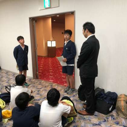 18:00 宿舎着。開舎式をして避難訓練を行いました。みんな元気です。