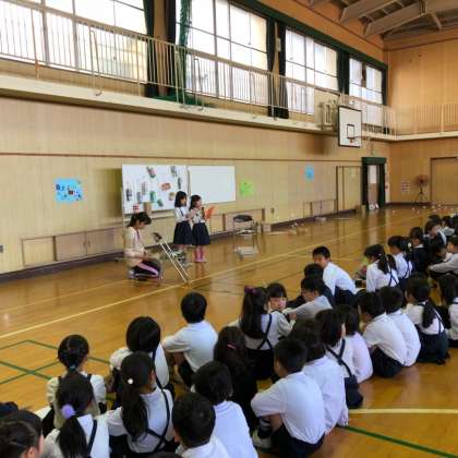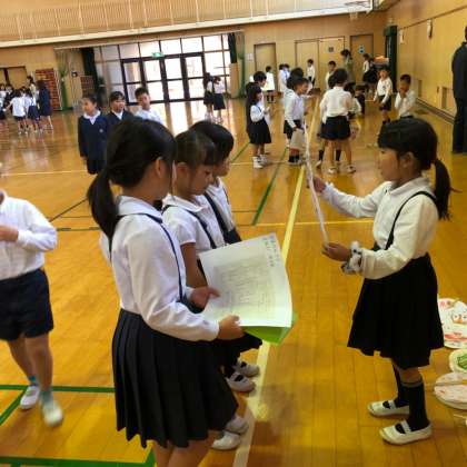 10月25日(木)2年生は、生活科で作ったおもちゃを使って「おもちゃランド」を開いて1年生を招待しました。色々なおもちゃやゲームがすごく工夫して作ってありました。はじめのあいさつの後、お店の紹介をしてグループでそれぞれのお店を回りました。2年生は、去年の経験を生かして楽しそうに1年生をエスコートしていました。1年生は、2年生と一緒にとても楽しい時間を過ごすことができました。