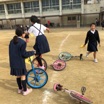 11月21日(水)休み時間に運動委員会が中心となって育和小の子ども達が進んで運動に取り組めるように育リンピックを行いました。竹馬、一輪車、ロケット投げ、ゴム跳び、タイヤ跳び、うんていなどを回って楽しむものです。どの種目からチャレンジしてもOKです。子ども達は、友達と一緒に楽しそうにそれぞれのコーナーを回っていました。育リンピックは明日も行われます。