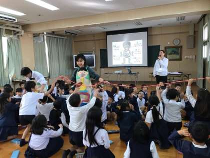 11月30日(金)1年生は、成人病予防協会の方に保健指導をしていただきました。「バナナうんちで元気な子!」というテーマで、うんちがなぜ出るのか、うんちをする大切さ、朝ごはんの必要性などについて教えていただきました。子ども達は、とても楽しそうにお話を聞いていました。これからも毎日しっかり排便をして元気に過ごしてほしいと思います。