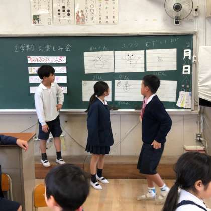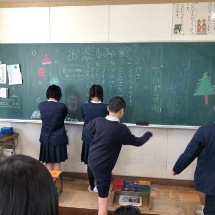 12月21日(金)それぞれの学級をのぞいてみると、多くの学級でお楽しみ会が行われていました。スポーツをしたり、クイズをしたり、出し物をしたりととても楽しそうにしていました。いろいろな行事があった2学期もあと1日でおしまいです。年末年始を含む冬休みを元気に過ごしてほしいと思います。