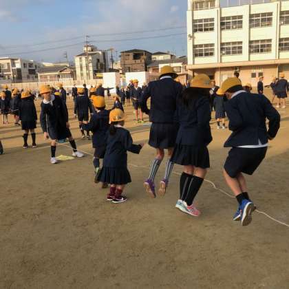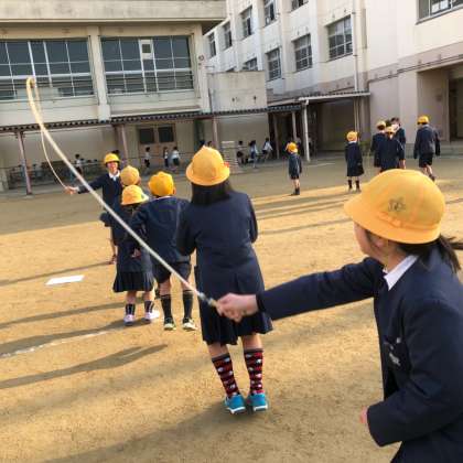 1月16日(水)朝会の時間に運動場でなわとび集会が開かれました。今日は、1・3・6年がたて割り班で集合して大縄を使って色々な跳び方に挑戦しました。子ども達は、高学年のリードで楽しそうに跳んでいました。明日は、2・4・5年が行います。寒い中ですが、寒さに負けずに、休み時間などを利用してなわとび運動にも親しんで体を鍛えてほしいと思います。