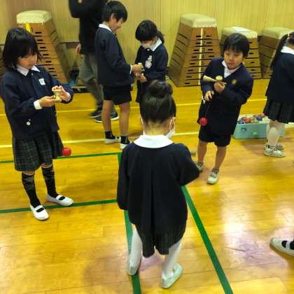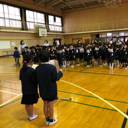 2月6日(水)3時間目に1年生は育和学園幼稚園と今川学園保育所の年長さんの子ども達とともに「うきうきらんど」と題して保幼小交流会を開きました。遊びの紹介の後、ボーリングやわなげなどの遊びのコーナーを一緒に回ったり、教室でランドセルから学習用具をしまったりする体験もしてもらいました。1年生の子ども達は、少し緊張しながらもしっかり園児をリードして交流していました。最後に歌とアサガオの種をプレゼントしました。園児の皆さんが入学してくるのを楽しみにしています。