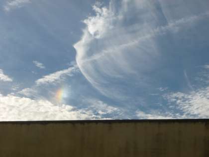 8月20日(水)午後5時頃、育和小学校の空に見たことがない虹と雲が現れました。空にぽっかり浮かんでいる四角い?虹。大きく広がったクラゲのような雲。暑い日の夕刻、不思議な光景でしたが、風はすっかり心地よい秋の風でした。もうすぐ2学期が始まります。