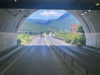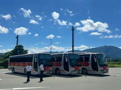 兵庫県を北上し、いくつものトンネルを抜けて「道の駅まほろば」に到着しました。学校を出て高速道路に乗ってからしばらくは、自動車の流れがゆっくりで渋滞気味でしたが、赤松サービスエリアからはバスも順調に進みました。