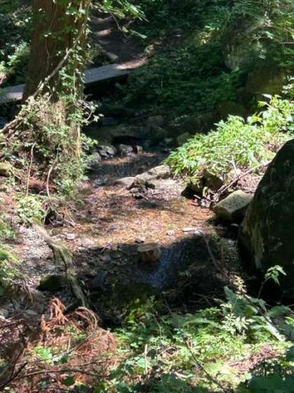 続いて沢登りの説明がありました。木陰に来ると、かなり涼しいです。水温は15℃。ここを登ってきます。プールとはまた違った感じに「めっちゃ楽しみ〜」