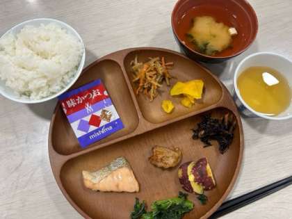 今朝の朝食はこんな感じです。「いつもはあんまり食べへんけど、今日はなんでか食べれる〜」とうれしそう。朝から栄養バランスよく考えられた献立でした。