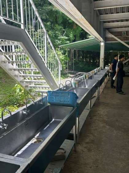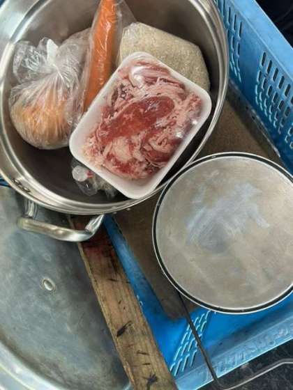 山頂とさよならした後は、班ごとに、カレーの食材カードをゲットしながら「トレジャーハンティング」をしました。子どもたちはお肉、にんじん、じゃがいも、玉ねぎ、お米、カレーのルーなどのカードを無事獲得。これから広いスペースで飯盒炊爨を経験します。まずは説明をしっかり聞きましょう。