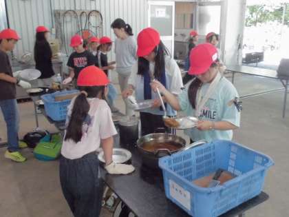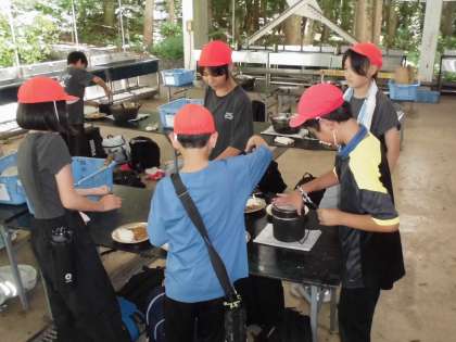 熱い鍋を運ぶときは、必ず「熱いの、通りますよ〜」と誰かが声を出してペアになって先導し運んだり、配膳も役割を順番に回したり、いろんなところで「協力」していましたね。